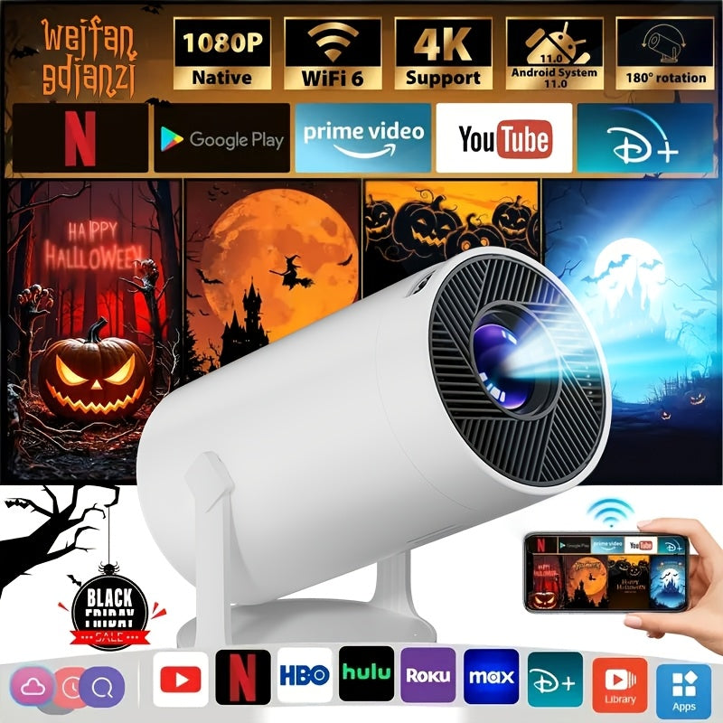 Home Theater Movie Mini Projector, Android 11.0 System, 4K Projector with WIFI 6 And BT 5.2, Decode 4k, Native 1080P,... Read more