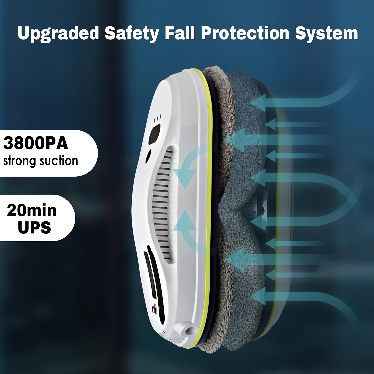The robot designed for cleaning windows is a smart home device equipped with a vacuum motor that boasts a strong suction power of up to 3800Pa, enabling it to draw in air and adhere to glass surfaces. This versatile cleaning robot can work on various surfaces, including all kinds of glass, flat walls, tables, floors, ceilings, windows, and hard-to-access spots.