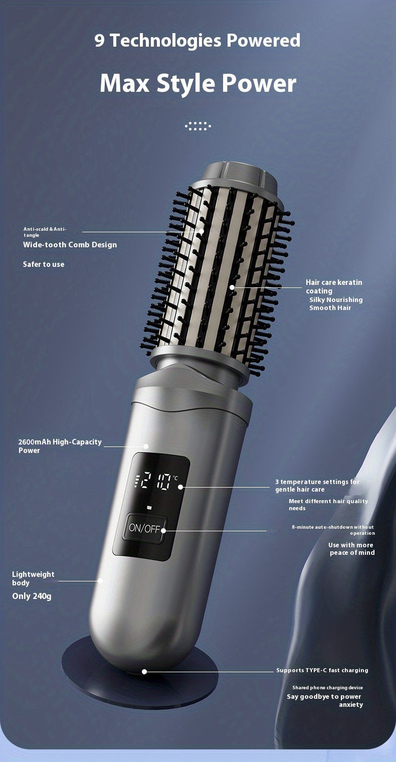 Cordless Hair Curling And Brush, Rechargeable 2-In-1 Styling Device Featuring an LED Screen And Three Levels | Compact Hot Brush... Read more