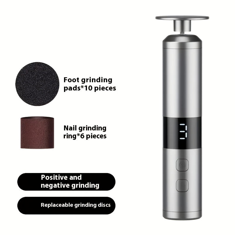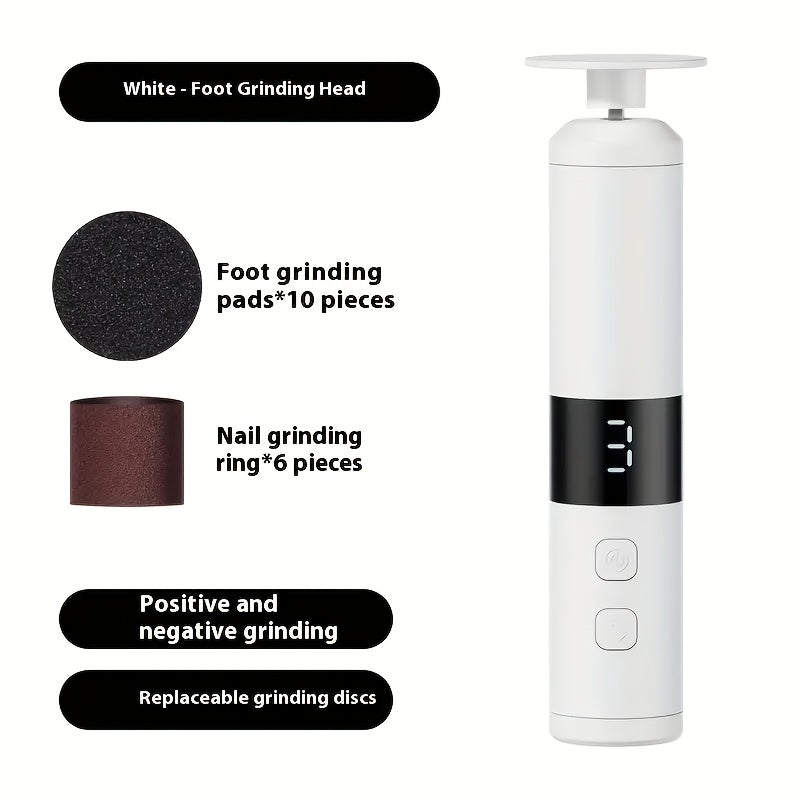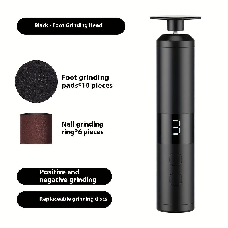 Electric 2-in-1 42mm Foot and Nail Grinder - USB Pedicure Device with 3-Speed Adjustment, LCD Display, 16 Interchangeable Heads for... Read more