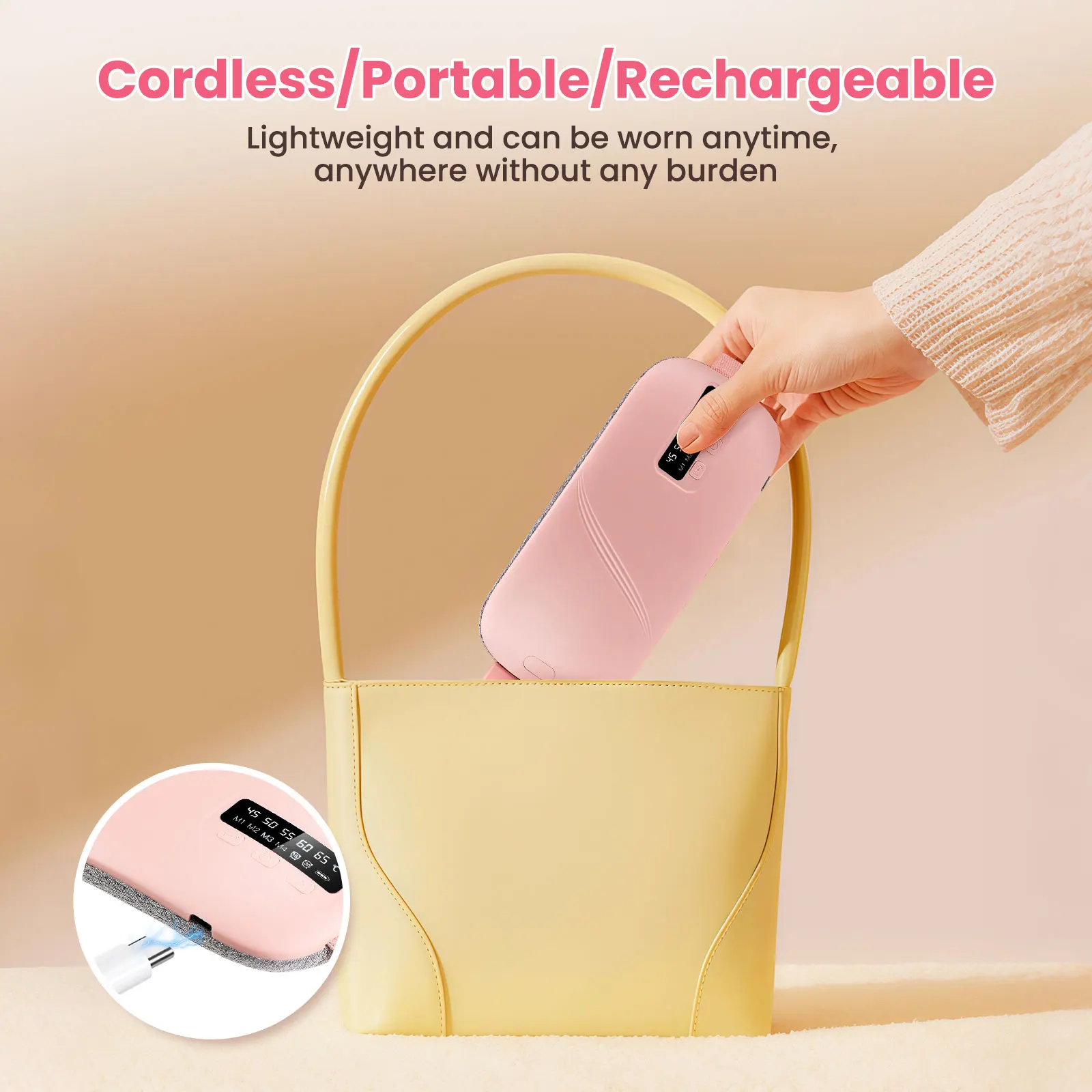 3. With five temperature settings ranging from 45°C to 65°C, the abdominal warmer belt ensures optimal warmth for every user. Easily adjust the heat level using the temperature control button to achieve the most effective warm compress experience during menstruation.