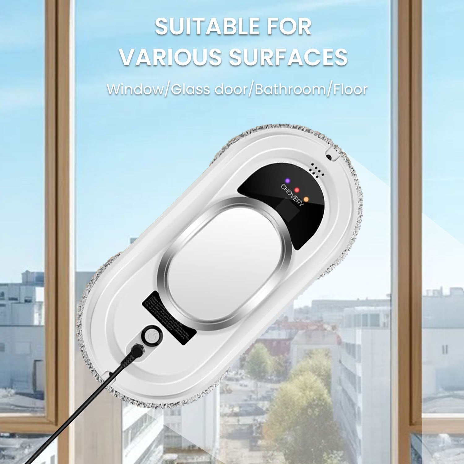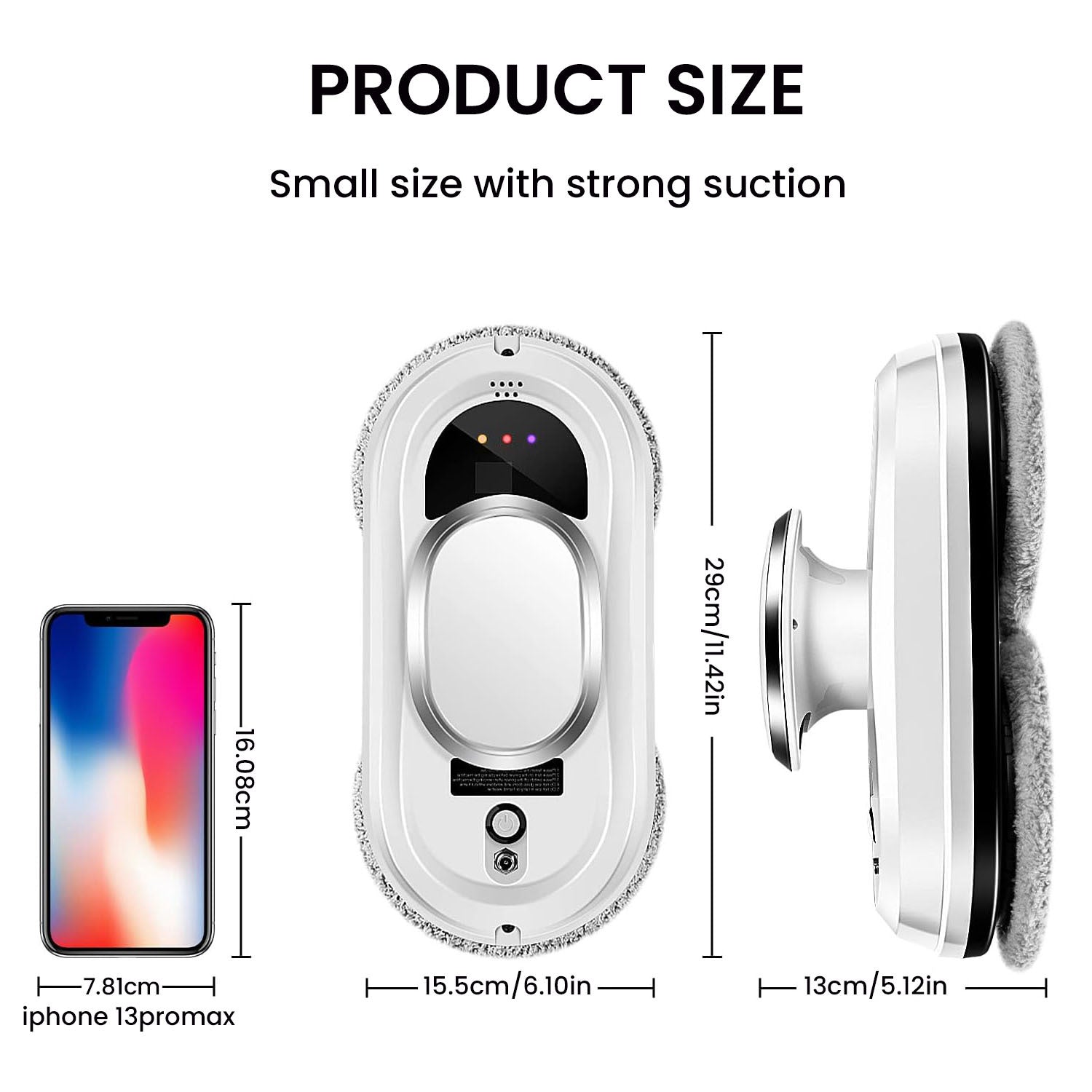 The suction power of the window washing robot reaches 5600pa, which can firmly absorb the windows (the fiber mat that is too wet will affect the suction power).