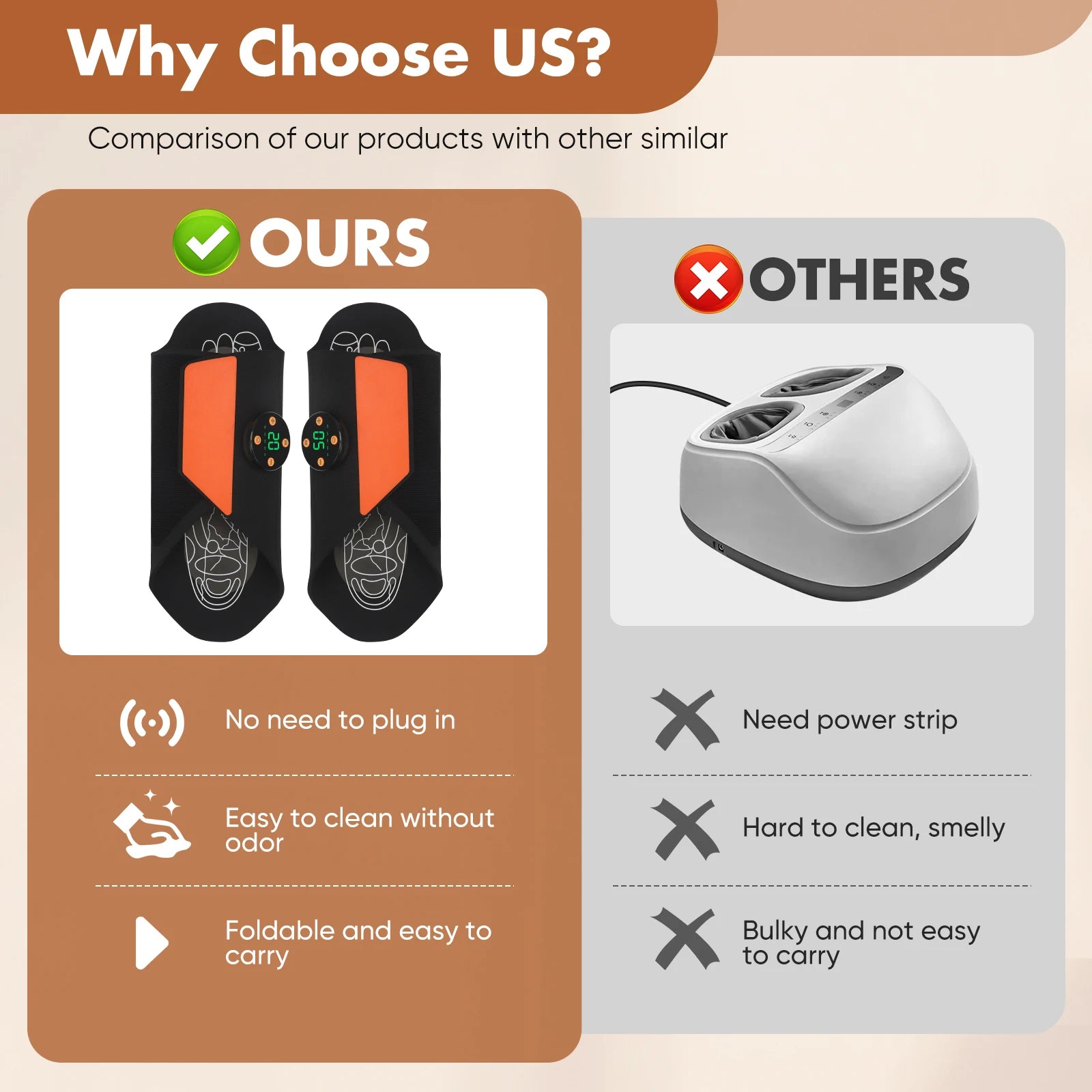 Innovative technology for your well-being: With foot reflexology design and E-M-S massage technique, this foot massager can help relieve pain from plantar fasciitis, neuropathy, chronic pain, muscle tension, swelling. Also helpful for relieving fatigue and promoting blood circulation.