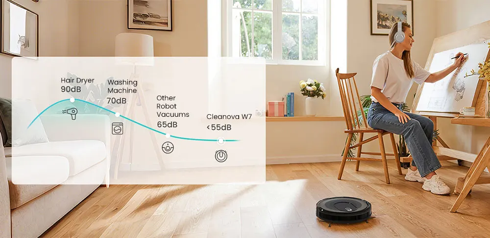 Enjoy deep cleaning on both carpets and hard floors with 4000Pa ultra-strong suction. Three customizable modes provide efficient cleaning with low noise levels.